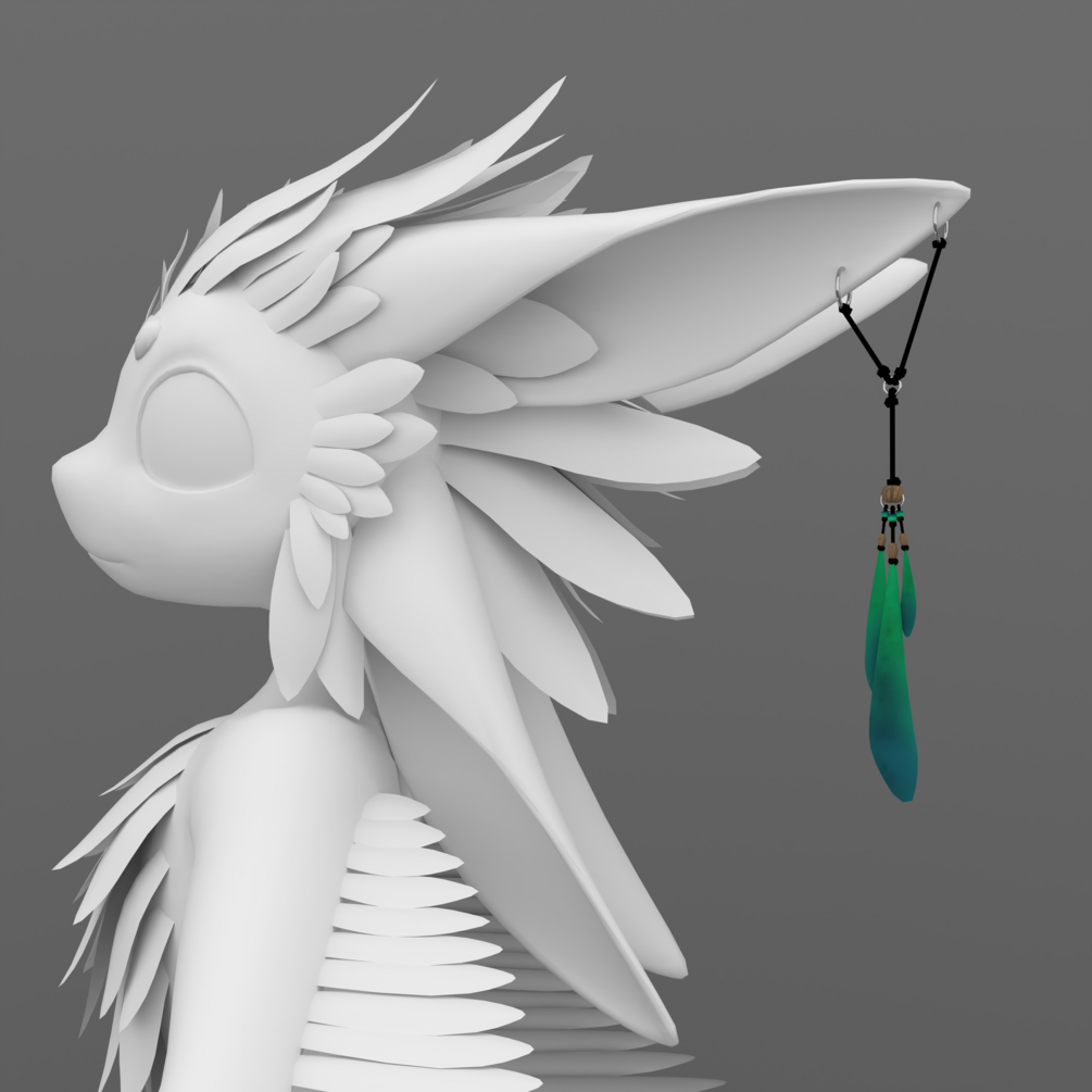 The earring is made so that you can attach the feathers of your loved ones to your avali's ear.